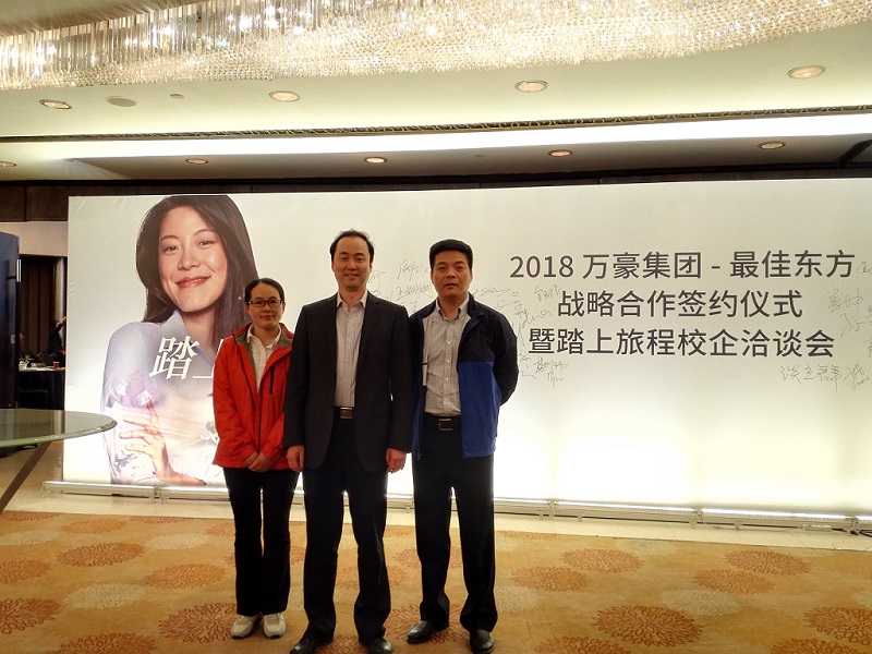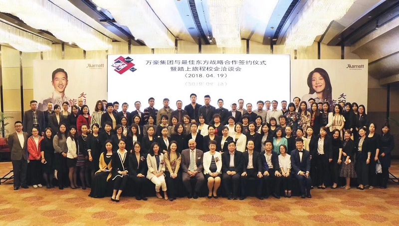 4月19日至20日,乔静、尹寿兵等一行应邀参加万豪国际集团与最佳东方在上海世茂皇家艾美酒店联合举行的“踏上旅程”校企洽谈会,来自全国40所本专科院校代表参会。