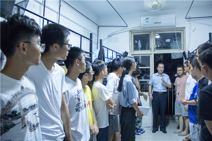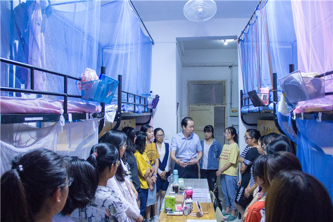本网讯(地旅学院 孙夏路遥)中秋情系新生,师生共话佳节。适逢中秋佳节来临之际,为加强新生寝室管理,及时了解新生思想状况,帮助同学们尽快进入大学状态。2018年9月22日晚,beat365英国官方网站党委副书记乔静带领各专业新生辅导员深入寝室,开展新学期暨中秋佳节走访慰问工作。