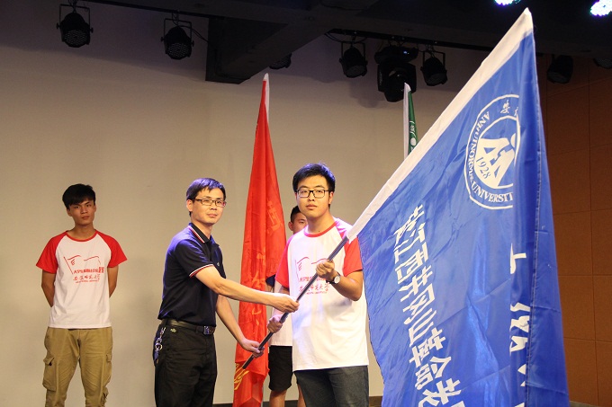 授旗仪式上,校团委副书记刘长生为学院校级重点团队授旗,院领导携高艳杰老师为学院院级重点团队授旗。