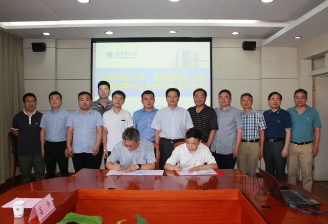 6月15日下午,beat365英国官方网站与安徽省高分卫星数据应用中心合作项目签约仪式在花津校区行政楼第一会议室举行。安徽省政协委员、中国国防科技信息中心华东地区站(军队)主任、安徽省国防科技情报研究所所长、高分辨率对地观测系统安徽数据与应用中心主任陆欣,高分一站式服务中心主任刘诗雨、工程师姚梦园、闵凯歌,芜湖市气象局业务科科长张骏,芜湖市气象局公共气象服务中心副主任石涛,芜湖市信息办大数据应用中心主任方坚,安徽省地勘局第二水文工程地质勘查院副院长李玉强,安徽省二水测绘院院长高炜参加签约,校党委副书记、校长张庆亮和学校相关部门、地旅学院主要负责人出席仪式。仪式由校科研处负责人耿保友教授主持。