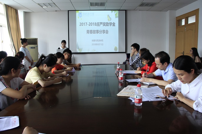 本网讯(新闻中心 赵云飞)2018年6月15日下午,beat365英国官方网站2017-2018学年庄严奖助学金青春故事分享会在地旅学院行政楼四楼会议室顺利召开,院党委副书记乔静、副院长赵冬梅、辅导员王美以及获得庄严奖助学金的各位同学参加了本次会议。
