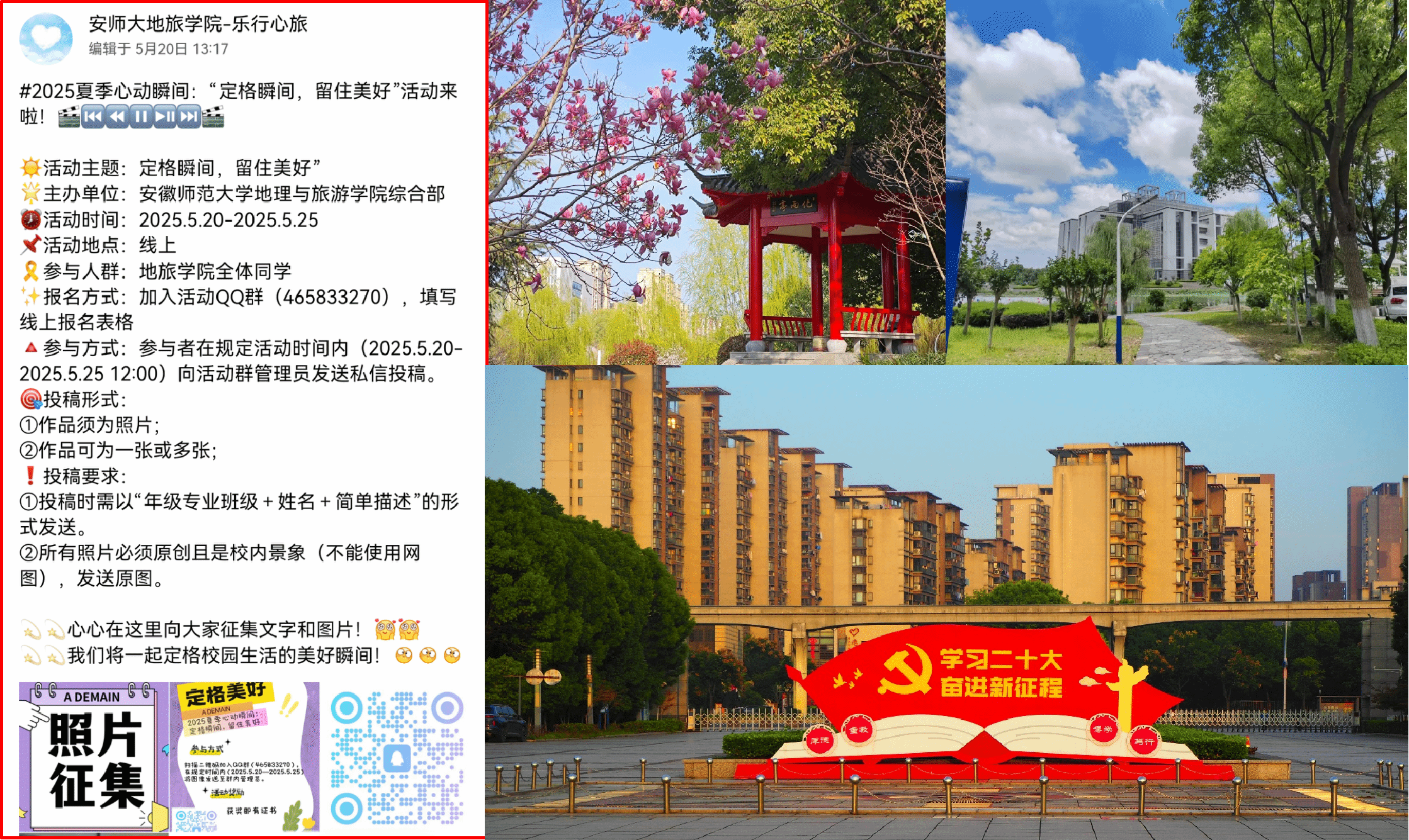 定格美好,拓展心理健康教育载体。为培养同学们学会发现美、善于欣赏美、主动创造美,引领同学们热爱美好、热爱生活,通过定格生活中的美好瞬间,唤起对生活的热爱与感恩,传递积极向上的生活态度和对美好的追求。beat365英国官方网站“乐行心旅”心理发展辅导站面向全院学生举办了以“2025夏季心动瞬间:定格瞬间,留住美好”为主题的摄影比赛活动,极大调动了同学们关注身边美好事物的积极性,让同学们在繁忙的课业之外,感受随处可见的小美好,养成积极健康的心理状态和生活态度,活动得到了同学们的踊跃参加和充分肯定。