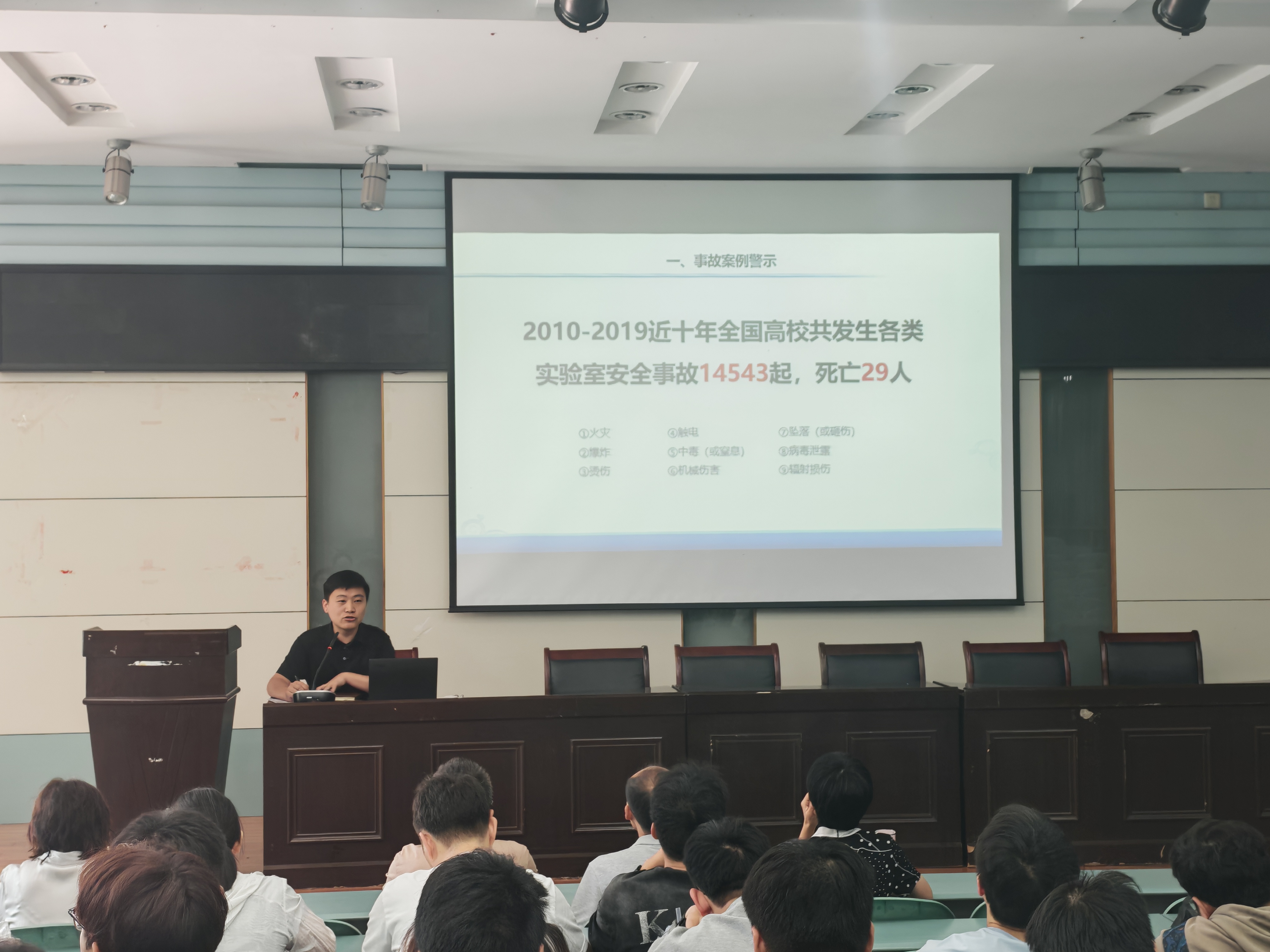 为进一步强化实验室安全管理,提升师生安全责任意识,6月26日beat365英国官方网站召开了实验室安全管理专题培训会,邀请校资产与实验室管理处李硕林老师做专题讲座。会议由行政副院长汪文文主持,各实验室安全责任人、相关实验教师及研究生代表参加会议。
