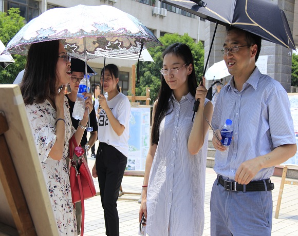 本网讯 (地旅学院 李爽) 6月14日, 由2015级城乡规划专业举办的 “焕活之湖,生机之岸” 作品展示会在花津校区二食堂成功举办,地旅学院党委副书记乔静、城乡规划系主任杨兴柱、副教授李俊峰、辅导员钱程以及指导老师黄秋实、专业课老师王雪微、王原、李婷君等教师莅临指导。