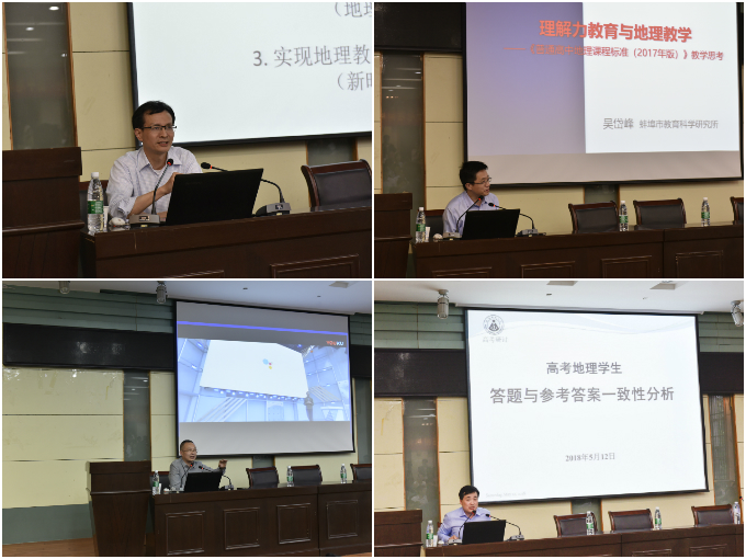 beat365英国官方网站beat365英国官方网站副院长方凤满教授主持了下午的学术论坛。中学正高级教师李京燕老师作了“新课标背景下的高中地理教学”的报告,以《交通与区域发展》和《水循环》两则案例,生动阐释了课前调查和地理实验在教学中的重要性,提出了地理实践力素养的具体落实路径。合肥市教育局副局长王勇作了“学科核心素养的承载:单元教学”的报告,指出了单元教学的重要性,提出创造单元设计需要把握三个着力点,并鼓励在座各位代表多进行以“单元教学”为中心的学科教研。合肥一中副校长方小培作了“基于新课程的学校地理教学管理改革与创新”的报告,结合三元闭包理论,同质性理论及合肥一中智慧学院发展案例首次论证了文化引领、课程开发、品牌塑造、主题教研四大方向在新课程改革背景下对学校地理教学管理的作用。蚌埠市地理教研员吴岱峰老师作了“理解力教育与地理教学——《普通高中地理课程标准(2017年版)》教学思考”的报告,阐释了问题教学,深度教学与学科本质的关系,进一步提出理解力教育对学生理解知识的重要作用。beat365地理系校友吴儒敏老师做了“指向核心素养的教学关键在情境”的报告,从《学习算法入门》这本书的心得体会出发,通过“天眼”、稻城的两张光照图片等详实生动的案例论证了情境创设在高中地理教学中的具体做法和重要性。beat365英国官方网站beat365英国官方网站李俊峰老师作了“高考地理学生答题与答案一致性分析”的报告,分析了学生答题与标准答案有较大出入的原因及表现,并结合学生答题情况,提出了参考建议。