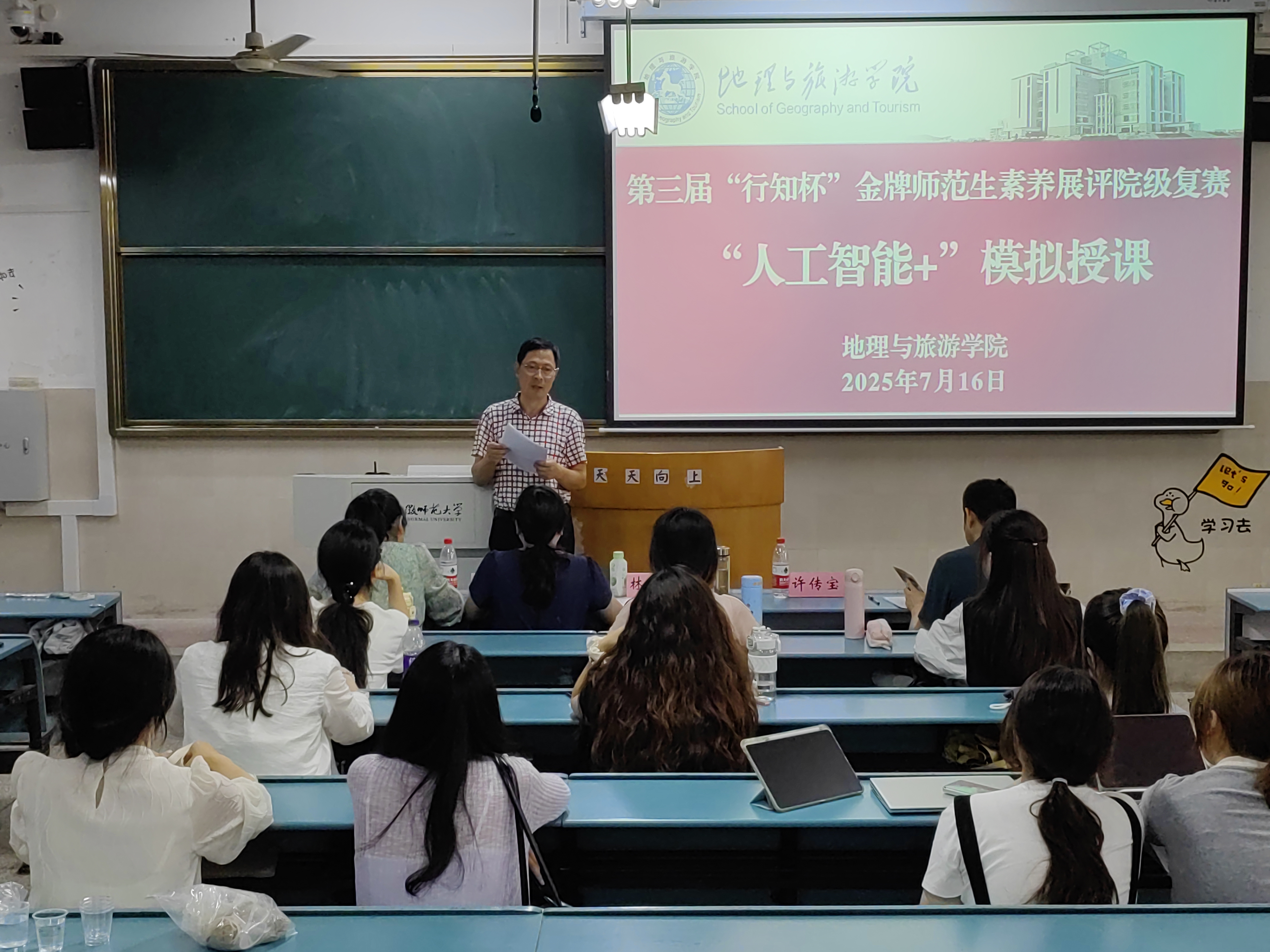 为进一步落实“基础教育振兴行动计划”,展示师范生暑期“小学期”“三金”工程工作成效,培养一批具备数字化教学设计理念和创新实践能力、适应“人工智能+”的高素质专业化基础教育教师,7月16日下午,beat365英国官方网站在学校行知楼2030302、2030303、2030304举行教学板书、教学教案以及“人工智能+”模拟授课、主题演讲展评院级选拔,马鞍山市红星中学年级部主任林章和、合肥市第一中学地理学科主任许传宝、合肥市第七中学地理学科主任程娣、淮南市第一中学姜静静等特聘教授、地理科学专业负责人、校内导师代表等担任评委。