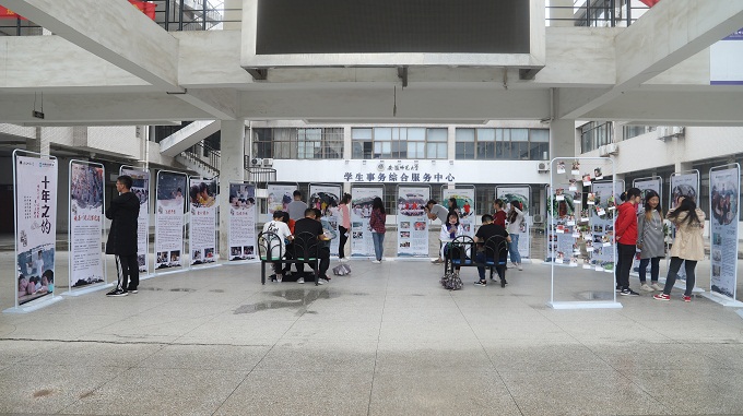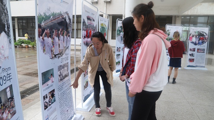 现场展览分为十年故事和优秀志愿者典型事迹两个部分,前者以11块精美展板以年为单位描述十年以来的支教活动内容,后者则重点展示了优秀志愿者的动人事迹。十年支教的故事未曾间断,118位支教志愿者接踵而来,受益的山区留守儿童多达473人,支教团队先后在四川达州、南充、凉山等山区建立4个支教点。团队构建了较为完整的支教志愿者招募和培训体系,并结合当地特点,不断优化课程结构,从基础课程辅导拓展到防震减灾、心理疏导等多种形式结合的“七彩课堂”。早期受支教的儿童中已经有10余名考上了本科院校,并有4名学生加入到支教团的队伍中来,支教故事的传承变得更加有温度。2017年,“川皖学堂”线上支教项目自此正式启动。一年来,团队累计支教130余课时,27个孩子从此告别了语文、数学单调重复的课程表,项目受到了《中国教育报》、教育部官网的专题报道。团队涌现出2017年全国优秀共青团员王阳等优秀志愿者典型。