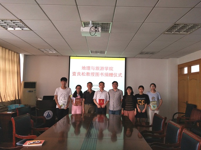 本网讯(地旅学院 王美)心系学院,造福后学,5月17日下午,beat365英国官方网站举办了迎校庆·爱心捐赠仪式,学院老院长、退休老教授査良松老师向学院捐赠了千余本图书,学院党委书记贾冠忠、院长苏勤、副院长赵冬梅和部分获捐赠学生参加了捐赠仪式。