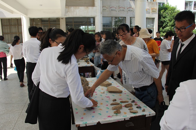 本网讯(地旅学院 孙夏路遥)为迎接师大九十周年校庆,普及地质知识,深化巢湖实习成果。2018年5月16日下午,由2017级地理科学专业主办、地理科普协会协办的,主题为“九十校庆 化意传情”巢湖实习化石展在安师大花津校区大学生活动中心一楼顺利举办。程先富老师亲临现场指导。