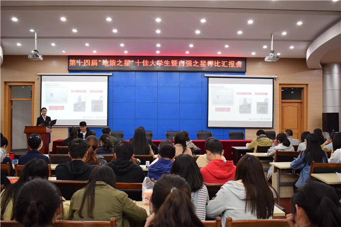 本网讯(地旅学院 王竞钊 赵云飞)4月8日晚,地旅学院第十四届“地旅之星”十佳大学生暨自强之星评比汇报会在花津校区圆形报告厅顺利举行。地旅学院党委副书记乔静、城乡规划系主任杨兴柱教授、各年级辅导员、各专业教师代表等出席了本次评比汇报会并担任评委,各年级各专业近200名学生代表观摩了本次评比汇报会。