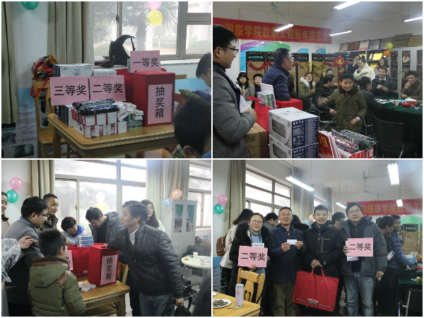 游艺会现场气氛在抽奖环节中达到高潮,院党委书记贾冠忠“首抽”赢得教职工的阵阵掌声,贾书记希望全体教职员工在活动中愉悦身心、增进交流,以更加昂扬的斗志投入新一年的工作和学习。最终,梁栋栋、方凤满、王原、刘雪梅等老师分获一、二、三等奖,其他教职工也获得精美纪念品。游艺会在全体教职工的合影中落下帷幕。