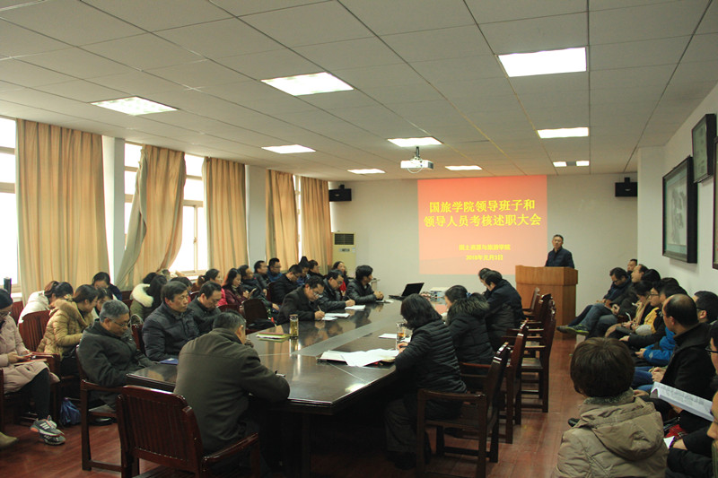 会上,贾冠忠代表班子作述职报告,报告从党的建设方面和事业发展的六个方面(本科生教育教学、学位与研究生教育、科研与社会服务工作、人事人才、学生与共青团工作和发展规划及其他工作)对学院2017年工作进行了详实汇报。报告指出,在学校党委、行政的正确领导下,在学校各有关部门的支持下,2017年国旅学院全院师生扎实工作,学院党的建设和事业发展取得新进展。