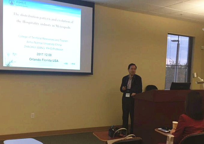 Rosen College of Hospitality Management )承办,该学院是北美地区旅游与酒店管理本科教育规模最大的院校,学院提供本科至博士学位的课程,并出版5种旅游酒店管理领域国际知名的SSCI学术期刊。会议期间,王朝辉教授拜访了该学院院长Abraham Pizam,Ph.D.和副院长王有成教授,双方就人才培养、项目研究、教师访学交流等进行了深入的交流,达成了初步合作意向。