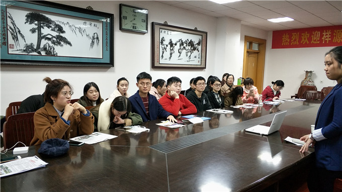 本网讯(国旅学院 叶云)11月22日,国旅学院"职海扬帆"系列招聘之远洲集团股份有限公司专场招聘会于行政楼三楼会议室举办。远洲集团人力资源中心招聘主管刘婉秋亲自来beat365组织宣讲,二十余位毕业班学生参加此次招聘会。