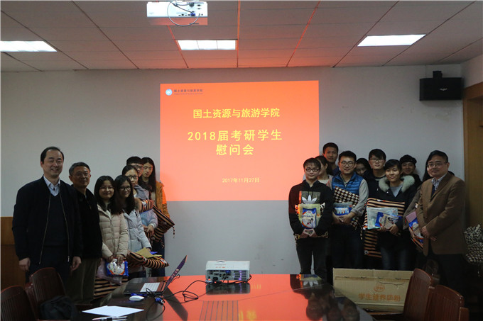 本网讯(国旅学院 熊丹丹)随着考研笔试时间的临近,为了鼓励考研学生在最后的冲刺阶段保持学习热情,坚定考研信念。11月28日下午,国旅学院在院行政楼三楼会议室召开2018届考研学生考前慰问暨冲刺阶段动员大会。院党委书记贾冠忠、院长苏勤、院党委副书记乔静、毕业班辅导员以及2018届考研学生代表参加了会议。会议由院党委副书记乔静主持。