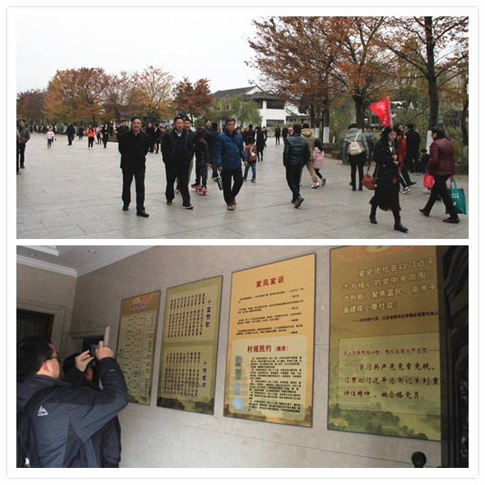 次日,党员们来到江阴市天下第一村“华西村”。在该村讲解员的陪同下,一行人先后参观了华西农业高科技示范园、智能化蔬菜大棚等景点,登华西金塔十五楼,观华西村欧式建筑别墅群,俯瞰大华西村全貌,走万米长廊、观华西发展之路、华西党建展览馆展厅,在参观学习的过程中,党员们深切地感受到华西村在党的领导下,艰辛创业,新老书记带领村民走中国特色社会主义道路,不断满足人民对美好生活的向往,从物质到精神,从文化到生态发生的翻天覆地的变化。大家通过参观展览馆、走村串户,深深地感到华西人坚韧不拔的精神。