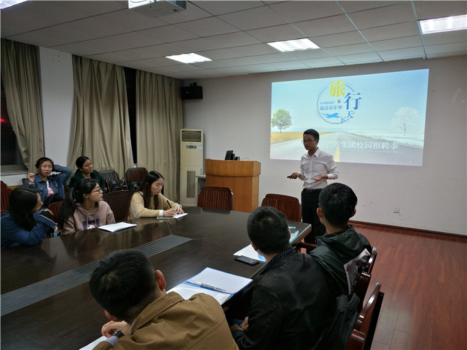 本网讯(国旅学院 叶云)11月15日晚,国旅学院“职海扬帆”系列招聘之祥源控股集团专场招聘会于行政楼三楼会议室举办。祥源控股集团人力资源经理李伟亲自来beat365组织宣讲,20余位毕业班学生参加此次招聘会。