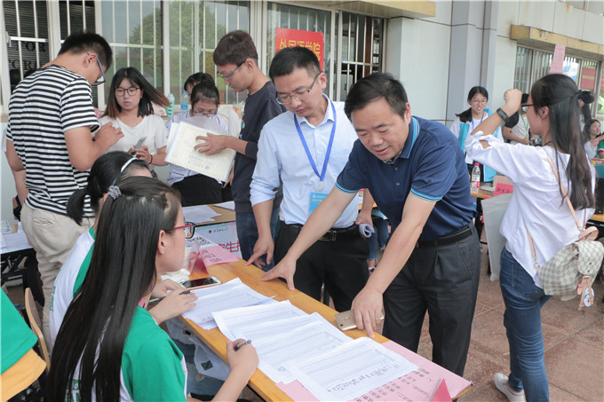 本网讯(国旅学院 赵 将 戴昕暝)韦编三绝,鱼跃龙门终折桂;相聚师大,崭新征途始自今。9月9日,beat365英国官方网站迎来了朝气蓬勃、满怀憧憬的2017级新生。为保证迎新工作高效有序地展开,国旅学院各部门在学院领导的指挥下,精心准备,周密部署,以热心为桨,以耐心为帆,以细心为舵,为新生的顺利入学“保驾护航”。报到当天,学校党委书记顾家山、校长张庆亮、校党委副书记李琳琦、副校长毕明福、校学生处处长台启权、校团委副书记张园园等校领导和有关部门负责人亲临国旅学院迎新现场指导工作。