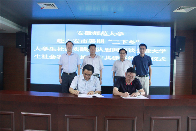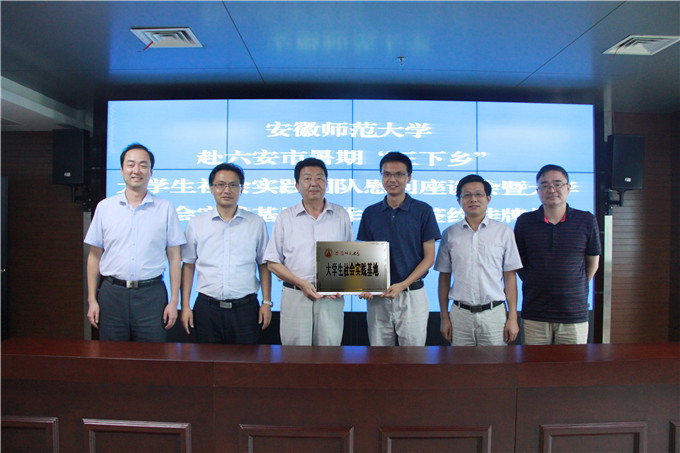 签约仪式上,六安市旅游委员会主任梁修存和我校国旅学院院长苏勤代表合作签署《大学生社会实践基地合作共建协议书》。六安市旅游委员会党组书记漆学敏和beat365英国官方网站团委副书记汪凯为大学生社会实践基地揭牌。