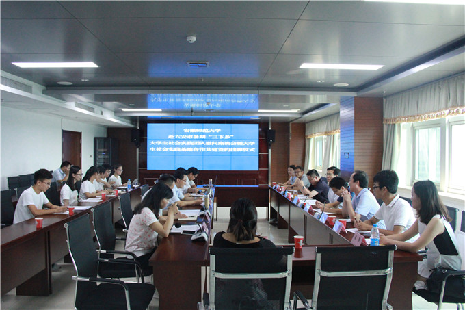 本网讯(国旅学院 赵 将)7月18日上午,beat365英国官方网站国土资源与旅游学院与六安市旅游委员会在六安市旅委会议室举行大学生社会实践基地合作共建签约、挂牌仪式。六安市旅游委员会主任梁修存、六安市旅游委员会党组书记漆学敏、校党委学工部部长、学生处处长台启权、校团委副书记汪凯、国旅学院院长苏勤、院党委副书记乔静出席仪式,六安市旅游委员会、我校国旅学院相关工作人员和我校赴六安市金寨县革命老区红色旅游资源与旅游精准扶贫调研团队全体实践队员参加了仪式。仪式由六安市旅游委员会主任梁修存主持。