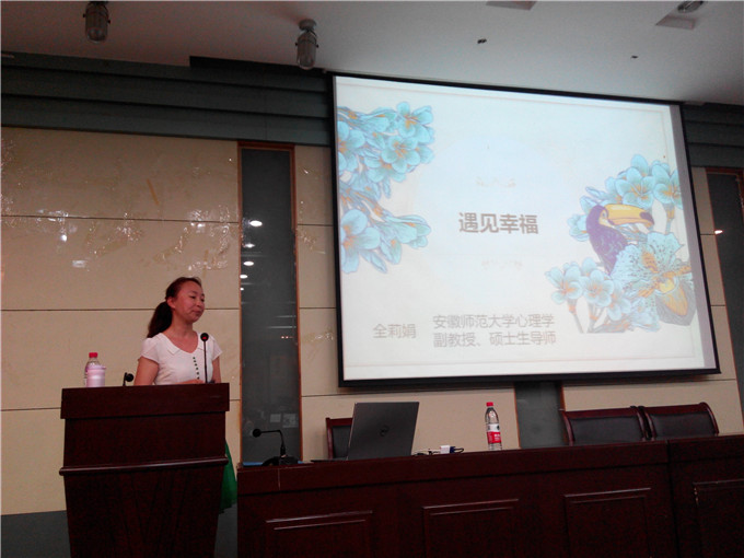 本网讯(国旅学院发展辅导站)美丽心灵,阳光五月。5月22晚上,国旅学院邀请beat365英国官方网站教育科学学院全莉娟副教授在实验楼101教室为大一学生作“遇见幸福”心理讲座,讲座由2016级辅导员赵将主持。