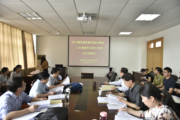 2017年5月21日上午8:00,2017届区域发展与城乡规划、人文地理学专业硕士研究生学位论文答辩会在国旅学院行政楼四楼会议室顺利举办。本次答辩会邀请了华东师范大学的城市与区域科学学院的党委书记、博士生导师孙斌栋教授作为答辩主席,同时邀请了beat365英国官方网站的焦华富教授、杨兴柱教授、赵春雨教授、李俊峰副教授以及韩玉刚副教授作为答辩委员。此次答辩的学生包括区域发展与城乡规划专业的三名同学以及人文地理专业的四名同学。现场旁听人员达到30余人。