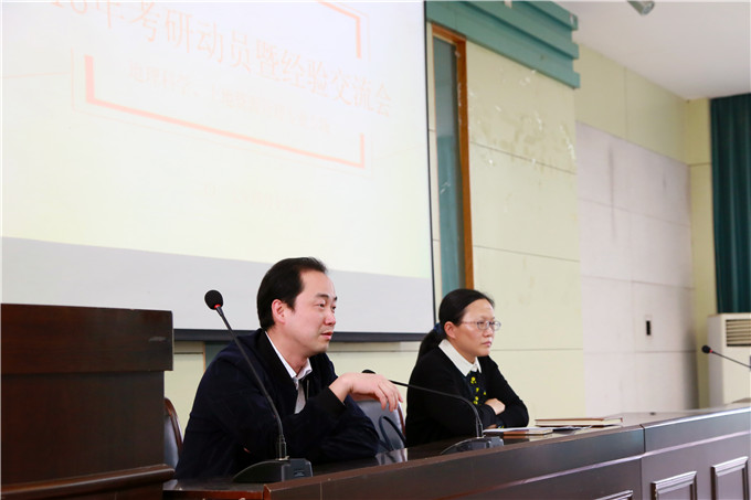 在地理科学与土地资源管理专场中,副院长方凤满、土地资源管理专业负责人鲁成树等建议各班级学子,在备考初期,同学们要结合自己的实际情况,选择一个适合自己的学校及专业,要学会融会变通;要以学长学姐们为标杆,学习他们肯吃苦,为理想努力拼搏的精神。最后对即将踏上考研之路的同学们给予期望和祝福。在地理信息科学和城乡规划专场中,地信专业负责人麻金继教授、城乡规划专业负责人曹卫东教授结合个人考研经历谈到:考研是青年大学生完善自我、实现人生“弯道超越”的重要机会,希望同学们能充满自信地踏上考研的征途,让自己的人生实现华丽地转变。在旅游管理专业分会场,王朝辉副院长、旅游管理专业负责人杨效忠、酒店管理专业负责人杨兴柱教授为在座同学分析了自身在考研方面的优势,鼓励大家积极准备考研。同时,他们也强调,考研不但可以锻炼思维与判断力,提升解决问题的能力,为将来的个人事业奠定基础,同时也是实现中国梦的人力资源支撑。
