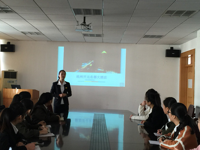 宣讲前夕,陈静通过有奖抢答的方式,向在座的同学对杭州开元名都大酒店的相关情况进行提问。并播放酒店活动策划花絮,大大调动了现场气氛,也使同学们对酒店有了更进一步的了解。
