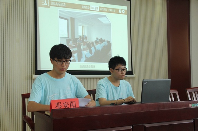 会上,宋德勇代表实践地党委政府致欢迎辞,并介绍了连江镇的整体概况和扶贫工作的开展情况。我校83级校友、定远中学校长戴茂俊介绍了定远县教育及定远中学的基本概况,深情回顾了昔日在母校的求学经历,表达了对母校的感恩和对母校师生用实际行动回馈家乡扶贫事业的感动和感谢之情。实践团队队长、2014级地理信息科学专业邓安阳代表团队汇报了实践活动开展情况,全体实践队员分别汇报了实践心得体会,同学们质朴的语言充满着对社会实践、对劳动人民、对扶贫事业的真情实感和对实现中国梦的坚定信念。方凤满代表学院对连江镇党委、政府对大学生暑期“三下乡”社会实践活动的支持表示感谢,并对同学们通过社会实践取得的进步予以充分肯定,她希望同学们要时刻把握安全底线,要将专业所学与社会实践紧密结合起来,要更加重视社会实践的后续工作,实现实践成果的高效转化。