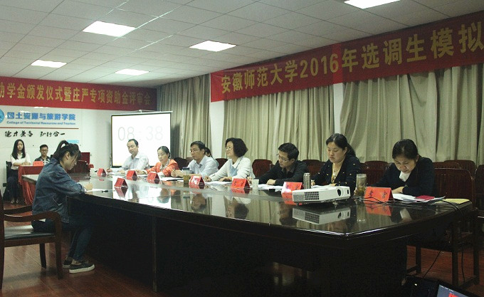 本网讯(国旅学院)6月3日,由安徽省干部培训高校基地(beat365英国官方网站)、党委组织部主办,国旅学院、历社学院、数计学院、环工学院联合承办的2016年选调生模拟面试在国旅学院会议室成功举办,校党委组织部部长季爱新,党委学工部部长、学生处长台启权,文学院写作教研室主任、副教授芮瑞和相关学院党委副书记担任了模拟面试考官,来自4个学院的14位选调生入围考生参加了模拟面试,20多位备战2017年选调生、公务员考试的三、四年级学生代表进行了观摩学习。