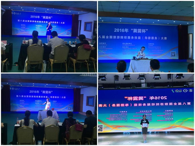 这是国旅学院首次参加全国旅游院校服务技能(导游服务)大赛,比赛开展以来,得到了学院高度重视,学院领导、指导教师、辅导员在选手选拔、理论知识复习、导游讲解实训等方面做了大量工作,先后多次组织选手综合演练,并提出针对性的建议。赛场上,国旅学院参赛选手2013级旅游管理专业学生季云媛,2014级旅游管理专业学生蒋文丽、孙晨、刘思佳四位同学通过综合知识理论考核、导游讲解和才艺展示三个环节的比拼,从全国340所参赛高校的近1000名参赛选手中脱颖而出,以优雅从容的姿态、专业娴熟的讲解、新颖精湛的才艺给评委们留下了深刻的印象并获一致好评,最终获得了较好的成绩。据了解,这是举办全国性旅游院校技能大赛以来,参赛院校最多、参赛学生最多、观摩人次最多的一次,在面对竞争异常激烈的比赛时,四位参赛同学在指导老师的精心指导下,表现出了扎实的理论功底、较高的专业水平和综合素质,也展现了beat365英国官方网站国旅学子的风采。