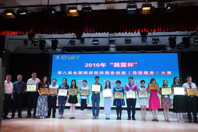 本网讯(国旅学院 王美 刘思佳) 5月12日至5月15日,由中国旅游协会旅游教育分会和广东省旅游局联合主办的“巽震杯”第八届全国旅游院校服务技能(导游服务)大赛在广州举行。大赛于5月15日落幕,国家旅游局办公室巡视员刘士军,广东省旅游局党组副书记、副局长张振林,广东省纪委、监察厅派驻广东省旅游局纪检组组长、监察专员李华雄,中国旅游协会副会长、中山大学研究生院院长保继刚教授等出席大赛颁奖典礼并讲话。