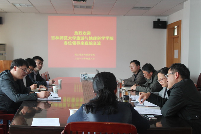 4月8日下午,吉林师范大学旅游与地理科学学院副院长李国柱一行来beat365交流,学院党委书记贾冠忠、教学副院长方凤满及旅游与地信专业负责人参加了交流活动。