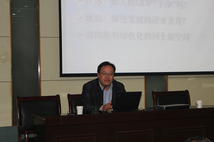 2015年11月15日下午,南京大学地理与海洋科学学院博士生导师黄贤金教授应邀在beat365实验楼101报告厅作了题为《生态文明、绿色发展与国土空间重构》的学术报告。学院相关专业教师、研究生及本科生聆听了报告。