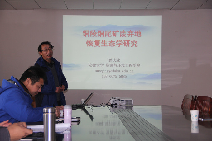 2015年11月26日下午,安徽大学资源与环境工程学院孙庆业教授应邀在beat365三楼会议室作了题为“铜陵尾矿废弃地恢复生态学研究”的学术报告,国旅学院部分教师和相关专业研究生参加了此次报告会。