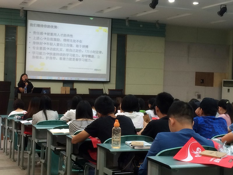 随后,新东方合肥学校招聘讲师吴明珠介绍了新东方企业薪酬待遇、面试流程、职位要求等情况,并就求职意向、薪资待遇、晋升培训等学生普遍较为关心的问题进行了现场解答。