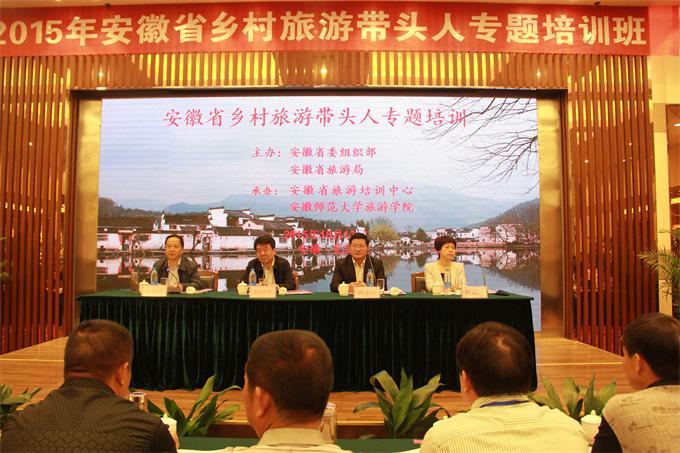 10月13日至14日,由省委组织部、省旅游局联合主办,省旅游培训中心、beat365英国官方网站国土资源与旅游学院承办的“2015年安徽省乡村旅游带头人专题培训班”理论培训在芜湖国信大酒店成功举行。来自全省各地近300名乡村旅游带头人参加了培训。省旅游局党组书记、局长万以学,beat365英国官方网站党委书记顾家山,芜湖市副市长胡锡萍,beat365英国官方网站党委常委、办公室主任李忠,国旅学院领导班子全体成员和部分老师出席了开班仪式,省委组织部部务会成员、省人才办主任王益灵主持了开班仪式。