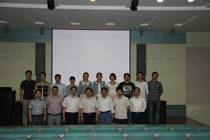 国旅学院2014届地图学与地理信息系统硕士研究生毕业论文答辩会,于2014年5月24日在院实验楼101教室举行。担任此次答辩委员会主席的是中国科学院遥感应用研究所李正强研究员。担任委员的是beat365地图学与地理信息系统专业研究生导师。beat3652012级及2013级全体地图学与地理信息系统专业研究生参加了答辩会。