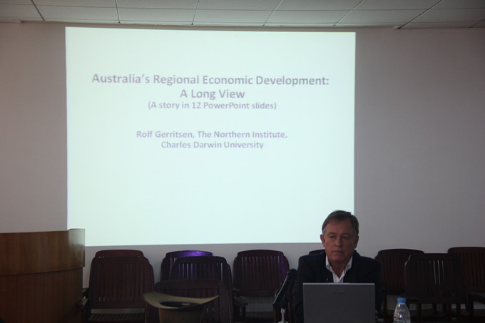 6月23日上午,查尔斯·达尔文大学北方研究所Prof.Rolf Gerritsen和曾本祥高级研究员在国旅学院三楼会议室分别作了题为 “澳大利亚的区域发展政策的变迁” 和“ 旅游开发、环境管理和区域发展”的学术报告。beat365相关专业教师和研究生聆听了报告会。