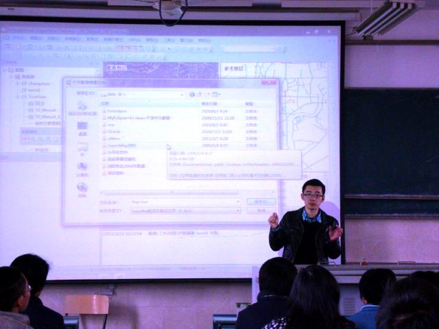 本次活动由学院地理信息系统系筹办。在为期一天半的培训活动中,超图工程师们就“Supermap Deskpro”的安装配置和使用方面对同学们进行专题培训,他们热情高涨、深入浅出地为同学们讲解各个专业技能方面的问题,将一线的实践经验不遗余力的传授给大家。休息期间,同学们还纷纷向经验丰富的工程师们请教,他们耐心为同学们答疑解惑。在场的同学们纷纷并表示参加本次培训讲座受益匪浅,对专业学习起到了重要的作用。
