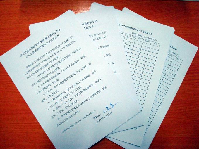 据悉,为了确保庐山自然地理野外实习的顺利进行,07地理在实习前做了大量的前期准备工作,制订了《庐山自然地理野外实习安全承诺书》,以提高同学们实习期间的安全意识;特别针对秋季流感专门制定了《庐山自然地理野外实习体温登记表》,在实习贵初中严格落实野外实习期间的晨检制度。(国旅学院)