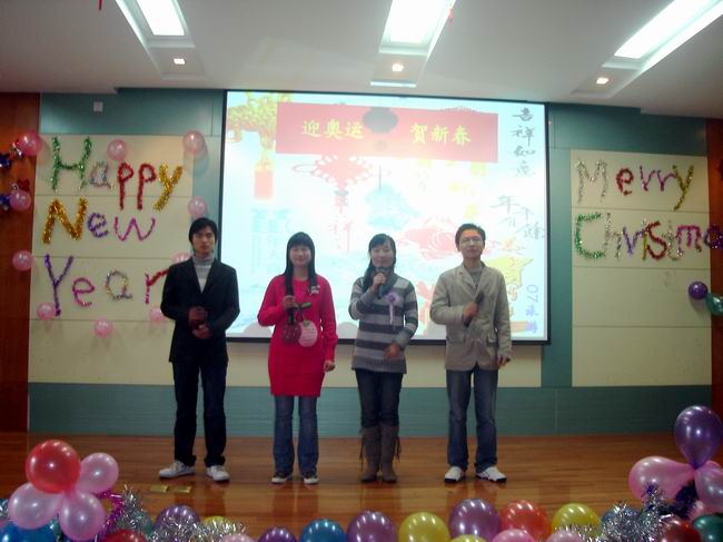 2007年12月22日07旅游管理专业的同学们在实验楼121室举办了 “迎奥运,贺新春”为主题的元旦联欢会。辅导员杨积芳老师出席并与同学们共联欢。
