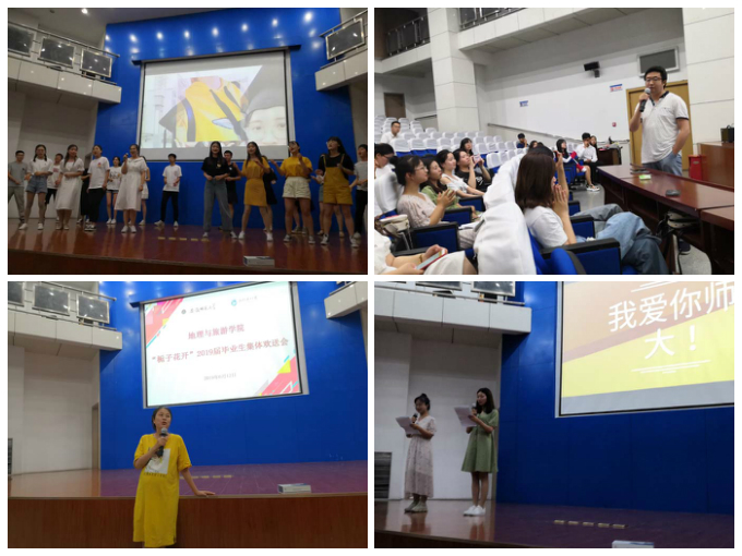 栀子花开,一季离别。6月12日晚,地旅学院“栀子花开”2019届毕业生集体欢送会在学校图书馆敬文报告厅举行。学院党委书记贾冠忠、副书记乔静、副院长方凤满、赵冬梅和专业教师代表杨效忠教授等教师代表,毕业班辅导员王美、钱程以及2019届全体毕业生参加了本次欢送会。欢送会上,全体领导班子成员和教师代表纷纷送上临别赠言,参会的毕业生和学弟学妹代表纷纷以歌唱、舞蹈、朗诵等形式,各自表达了对母校和师长的不舍之情和祝福希望。现场气氛温情热烈,依依惜别之情难以言表。