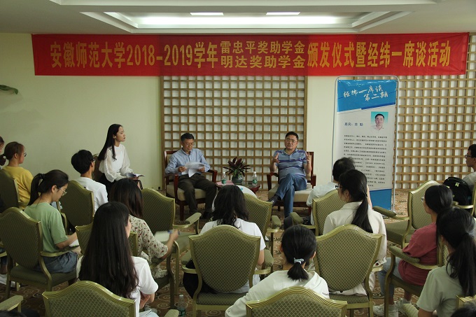 颁发仪式结束后,第二期“经纬一席谈”拉开帷幕,本期嘉宾邀请学院党委书记贾冠忠和院长苏勤与同学们交流专业学习和考研就业等方面的问题。他们希望同学能够树立远大理想和大学学习目标,鼓励大家广泛涉猎各种各样的书籍,多读书、读好书,多学习文学,历史,哲学,对人生发展有指导性作用;学习不能走马观花,将所学的知识用于实践,课外学习会对自身发展会起到意想不到的效果;本科生就业前景良好,要学会坚持,就业取决于个人兴趣,职业认同感和社会评价。在现场互动交流环节,同学们积极踊跃、争先恐后地提出问题,氛围十分热烈。活动结束后,现场师生亲切自拍合影,记录美好时刻。