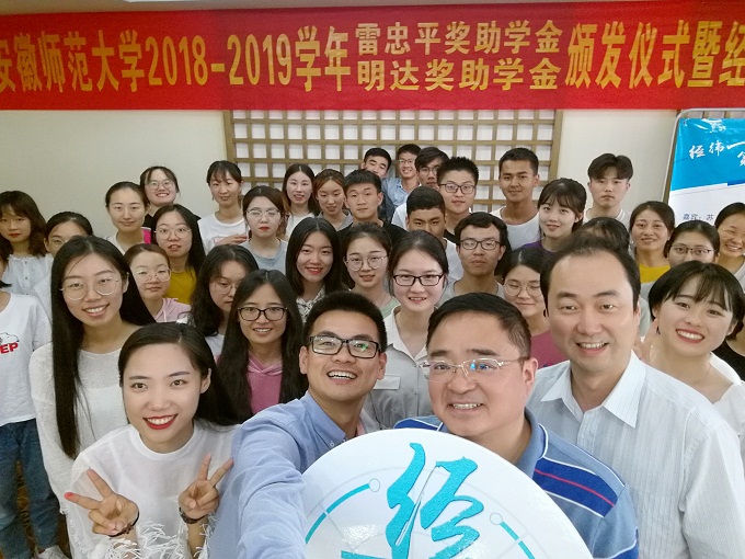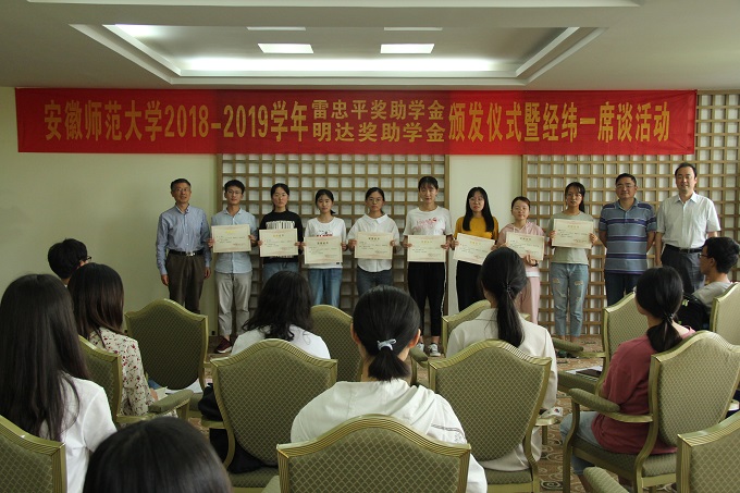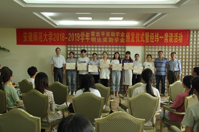 本网讯(地旅学院 陈健)6月21日下午,地旅学院在院实验楼旅游专业实训室成功举行2018-2019学年雷忠平奖助学金、明达奖助学金颁发仪式暨经纬一席谈活动。学院党委书记贾冠忠,院长苏勤、党委副书记乔静、辅导员代表以及获奖受助学生代表参加了本次活动。活动由学院团委副书记陈祥云主持。