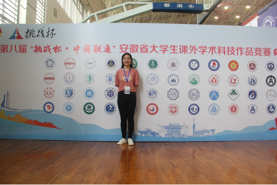 2019年5月26日安徽省第八届“挑战杯”大学生课外学术科技作品竞赛终审决赛,第二次代表团队在省级比赛中汇报展示作品。从大二参赛时的手忙脚乱到大四的从容,她感谢自己经历过的每一次PPT展示汇报,真真切切的感受到了自己的成长。坚定自己要去做好一件事的信心并相信自己行,不是说说而已,是要去经历慌乱经历自我否定和怀疑,然后绝处逢生豁然开朗,并开始期待下一次的挑战。越是憧憬,越要风雨兼程。