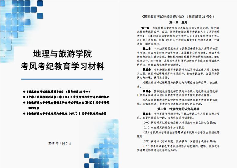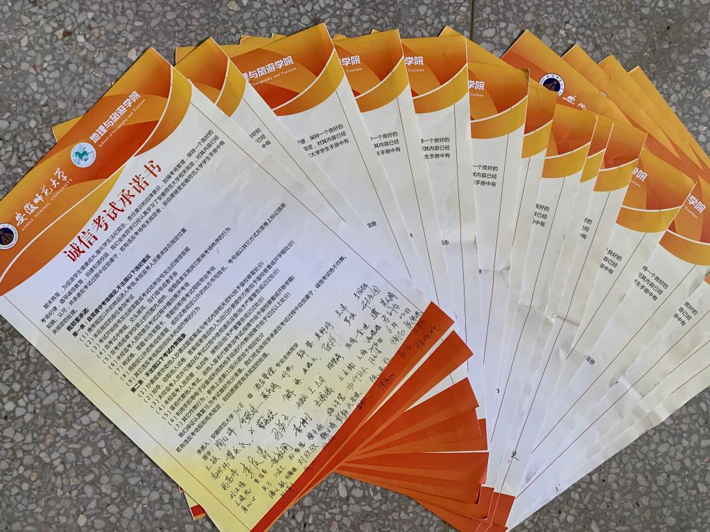 本网讯(地旅学院 吴文涵)“诚信为人,严肃学风”。为进一步加强地旅学院学风和考风建设,强化学生诚信考试意识,6月18日起,地理与旅游学院积极组织和开展了期末考风考纪教育专题系列活动。