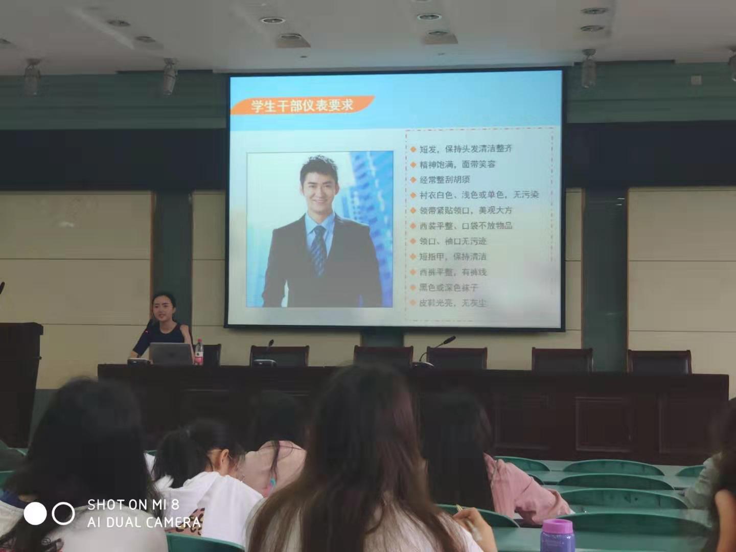 学院邀请芜湖机电职业技术学院文化礼仪讲师、校友吴燕带来《人际交往礼仪素养的培养与提升》拓展课程,结合生动案例,从个人形象、尊重礼仪、细节表达等几个方面为学生骨干们传授了社交礼仪的实用技能。