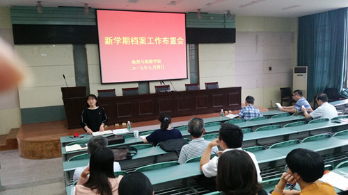 赵冬梅结合学校档案工作要求和学院档案工作现状,针对档案收集的难点,讲解了档案收集工作中和教职工密切相关的工作环节、要求,她说,档案收集工作就是要及时、心细、手勤、眼勤。各位老师认真梳理和整理手上上学期及暑期社会实践、学术会议、培训、竞赛等方面的文件、资料、照片、视频等文字和音像资料,及时存档,希望大家做档案收集工作的有心人。苏勤院长强调,学院是学校教学与科研的一线阵地,学院档案如实记录了学院在教学、科研、社会实践活动方面所取得成果,客观反映了学院的发展轨迹与规模,是开展教学评估、学位点评估、博士点申报、学生培养等工作的重要基础、依据与凭证,“人人都是档案员”这个理念必须贯彻到大家的日常工作之中,每个人都应该以主人翁的态度对待,及时、真实地记录与留存有关工作材料。