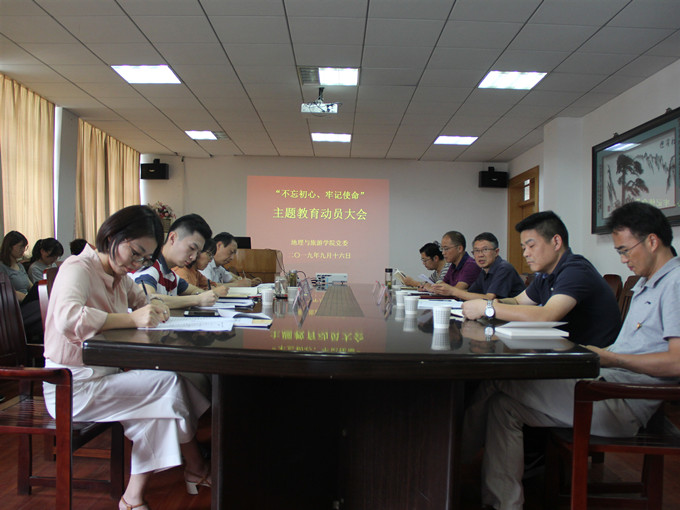 本网讯(地旅学院)9月16日下午,beat365英国官方网站在院三楼会议室召开“不忘初心、牢记使命”主题教育动员大会。学校第五指导组副组长吴长义、成员桂彬出席会议,学院全体党委委员和各党支部全体委员参加会议,动员会由院党委书记贾冠忠主持。